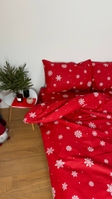 Комплект постільної білизни Фланель (байка) сніжинка червона